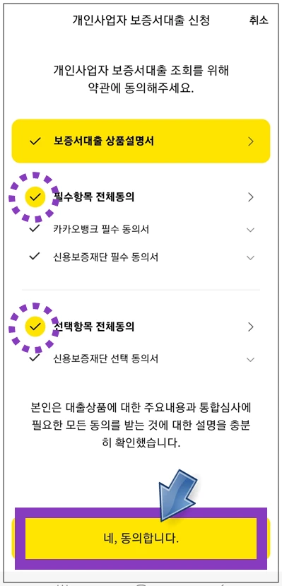 4 동의 항목 내용을 확인한 후 "동의합니다" 버튼을 눌러주세요.